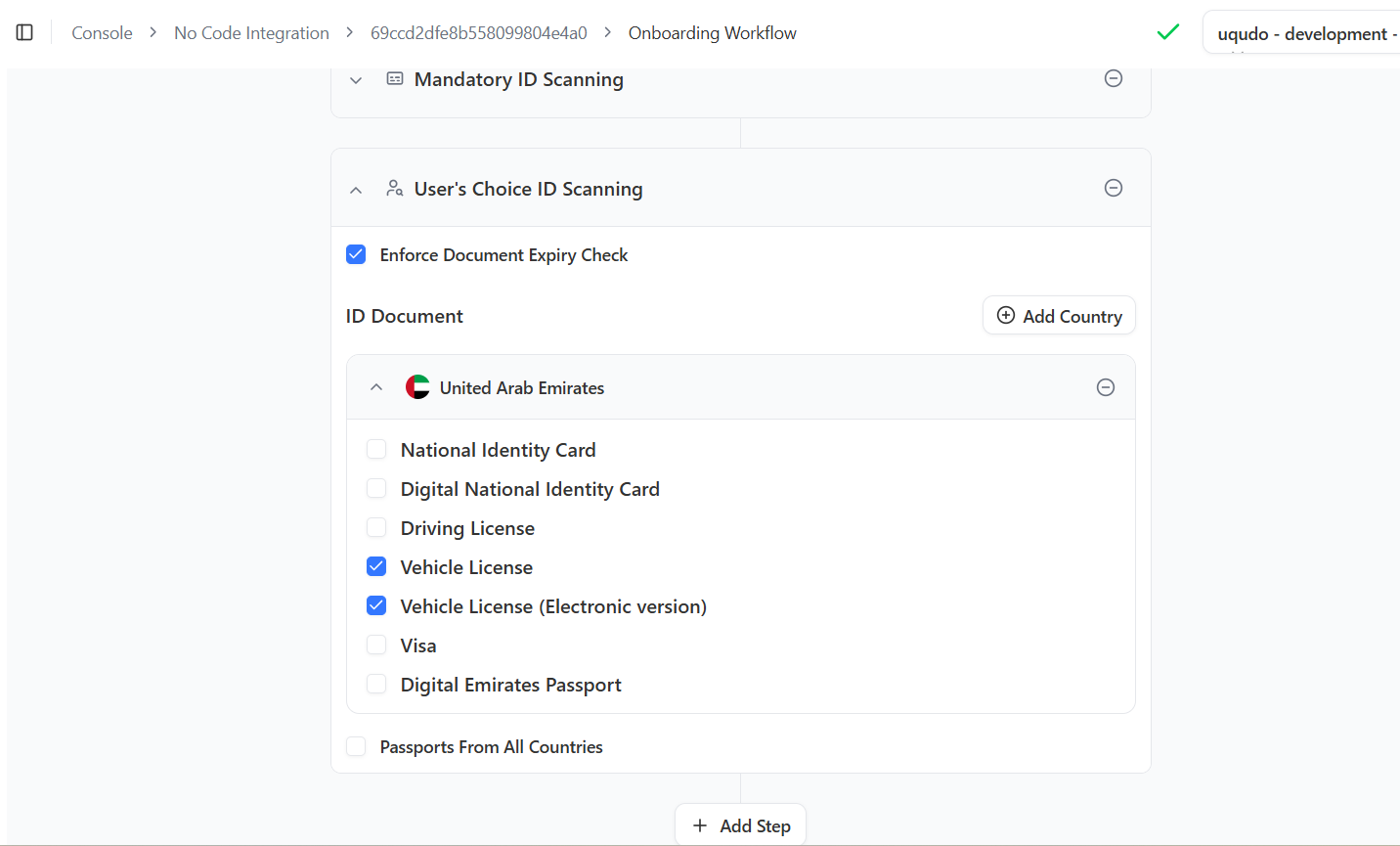 **Note:** If you need to remove the main ID scanning step later, remove any dependent steps such as **Background Screening** or **Face Authentication** first.