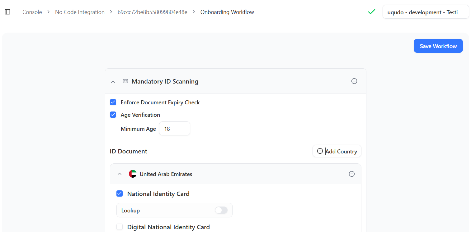 When Age Verification is enabled, the onboarding checks whether the document holder meets the minimum age you configured for that document.