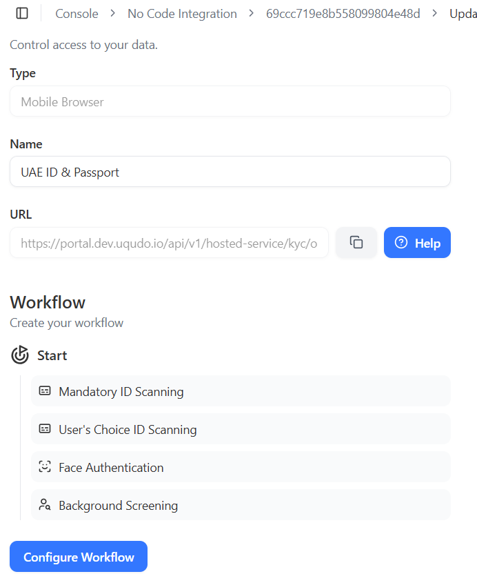 Use **Workflow Settings** to define the steps your end-users must complete during Hosted KYC.
